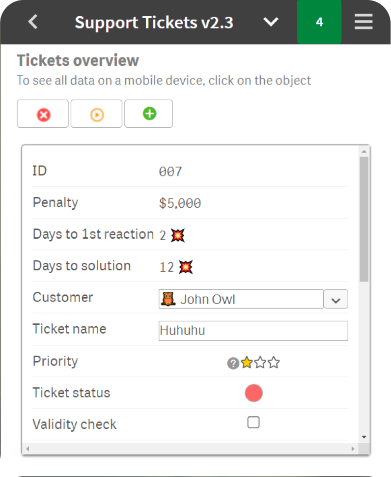 Az összes szerkeszthető objektum az interakciók és a szelekciók alapján automatikusan alkalmazkodik a Qlik munkalapokhoz. Válassza ki a dimenziókat, rendezze őket Qlik adatok és beviteli mezők szerint, és keressen bennük.