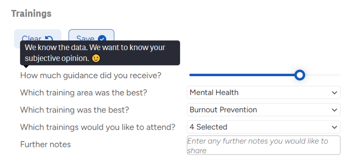 Választhat a szokásos mezőtípusok közül, pl. text, number, date, time, checkbox, switch és range, vagy egyedi opciók közül, pl. színválasztó, jelzőlámpa, rádiógomb és fájlfeltöltés.