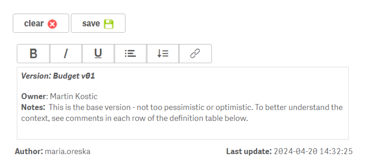 Adjon hozzá jegyzeteket Qlik-szelekcióihoz egy szerkeszthető lapterületen és válasszon a többféle formázási lehetőség közül.